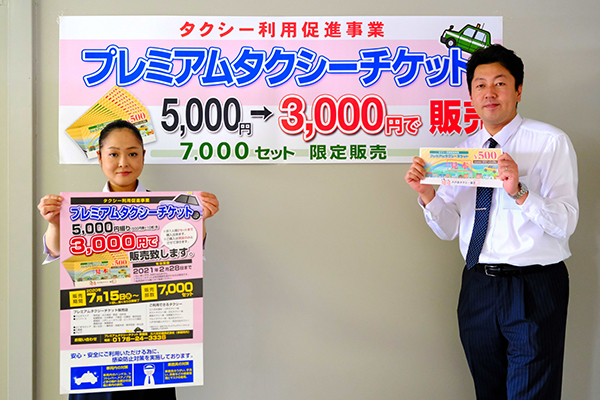 八戸市タクシー協会はタクシーの利用回復に向けて、5千円分(500円券×10枚)を3千円で購入できるプレミアムタクシーチケットの販売を7月15日から開始しました。