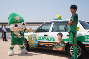 三八五交通に勤務する須藤 貴郁選手がキャプテンを務める「ヴァンラーレ八戸」は今シーズンJ3昇格を目指して奮戦中です。三八五交通ではヴァンラーレ仕様のラッピングタクシー2台を7月より市内で営業し応援しております。どなたでもご利用いただけます、売り上げの一部は強化費としてクラブに協賛しております。