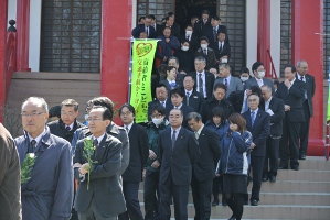 毎年春の交通安全運動期間に行われる交通安全祈願祭が本年も八戸市朔日町『来迎寺』に於いて執り行われました。大正当時から交通事故防止運動の重要性を訴えた八戸地方の大先覚者吉田三郎兵衛氏の遺徳を偲んで行われています。グループ社員も参列し顕彰碑に献花をして交通安全を誓いました。