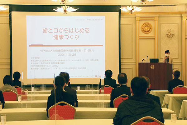 10月26日、八戸学院大学医療学部看護学科の西村美八先生をお招きして三八五グループ健康セミナーを開催致しました。