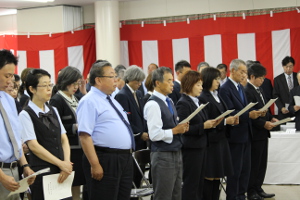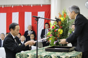 6月26日で三八五グループは創業72周年目を迎えました。八戸市長苗代の三八五流通㈱本社にて近郊のグループ会社が出席して記念式典が行われました。永年勤続40年・30年・20年や無事故30年・25年・20年等、従業員の功績を讃え副賞を添えて表彰いたしました。