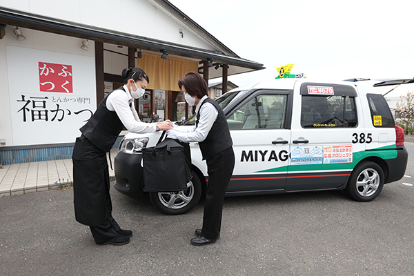 三八五交通では「頑張る飲食店応援プロジェクト」として、5月1日から5月13日まで飲食店の料理をタクシーで宅配するサービスを行っております。
