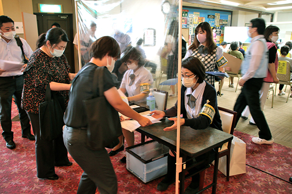 初日は300人が接種。事務局として本社職員8名が受付等運営にあたっています。