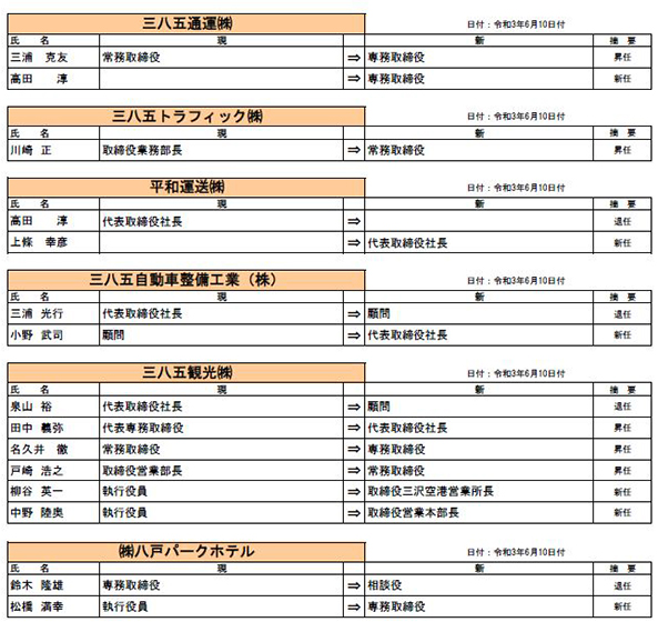 三八五流通・三八五流通グループ各社では、役員異動が決定しましたのでお知らせいたします。