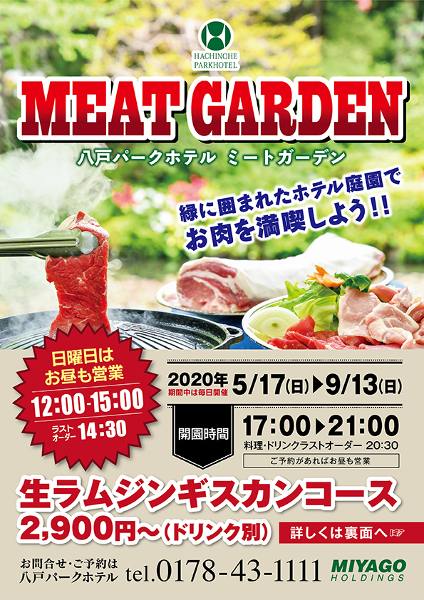 毎年大好評の八戸パークホテルのビアガーデン。今年は「ミートガーデン」と名前を改め、オープンしております。