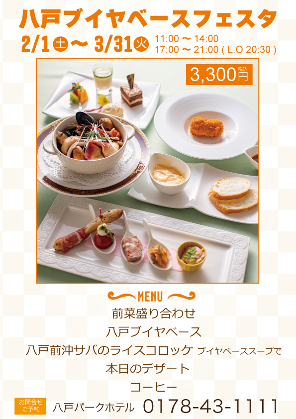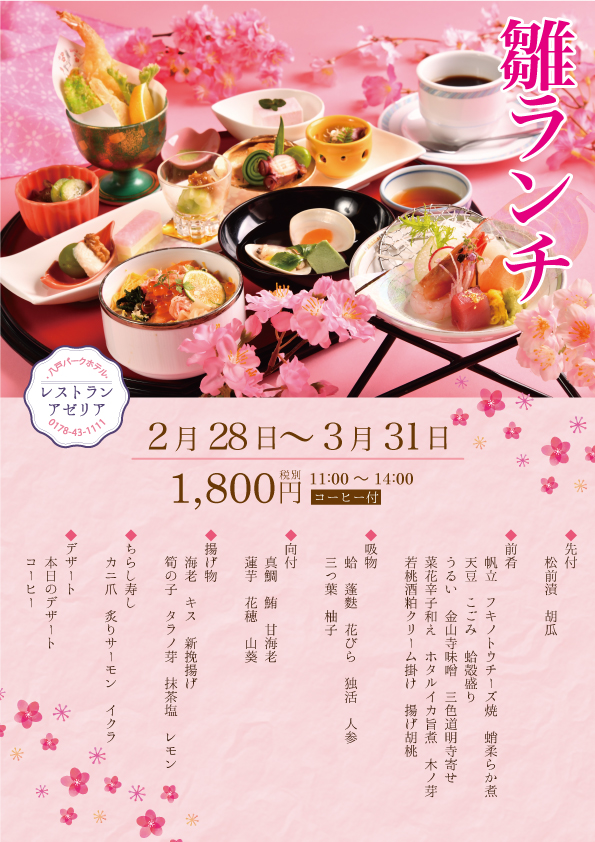 八戸パークホテル レストランアゼリア 3月限定メニューのお知らせ