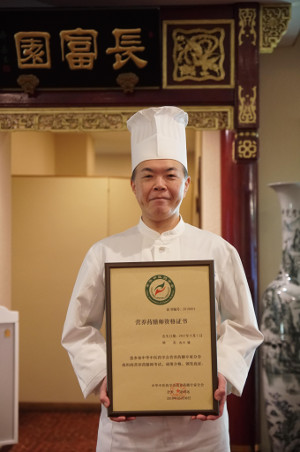 この度、中国政府公認国家資格『営養薬膳師』の試験に、八戸パークホテルの古川料理長が八戸市内では初の合格者となりました。2年間にわたり食養薬膳学の歴史・基本思想から東洋の理論を学び、学科試験・レシピ作成試験に合格して取得できる難関資格です。この資格を生かし、八戸でも食養薬膳への理解を深め広めていきます。