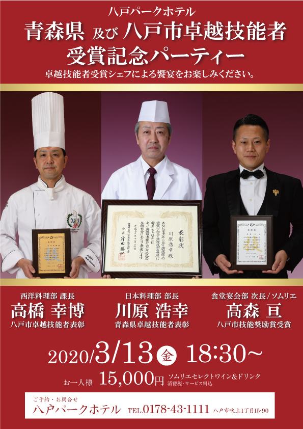 受賞を記念して、「青森県及び八戸市卓越技能者 受賞記念パーティー」を開催いたします。