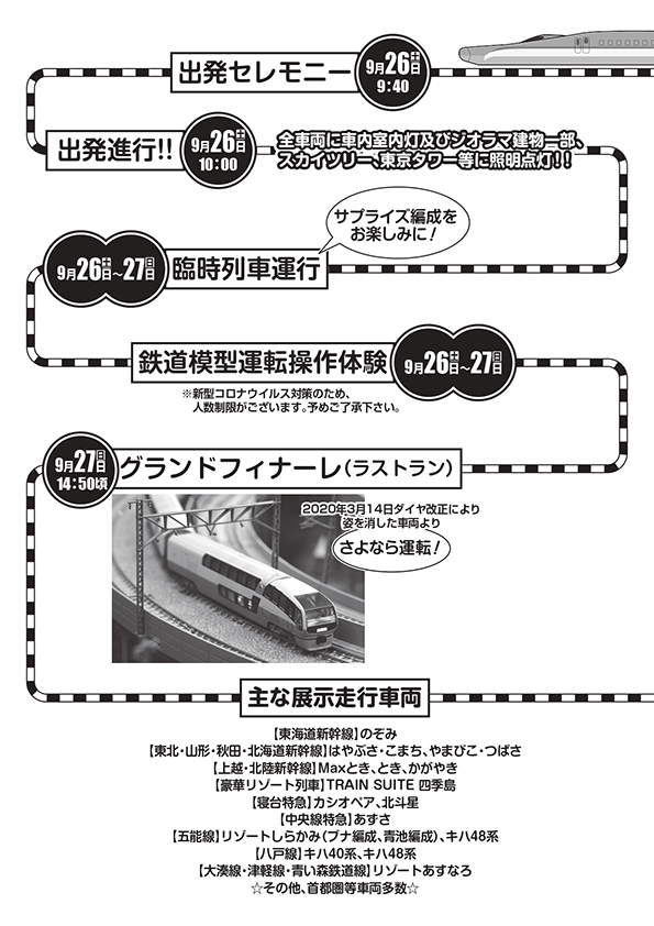 本イベントは3年目を迎え、内容もパワーアップ!SL、新幹線、リゾート列車など約30種類280両以上の人気車両が大集合。
