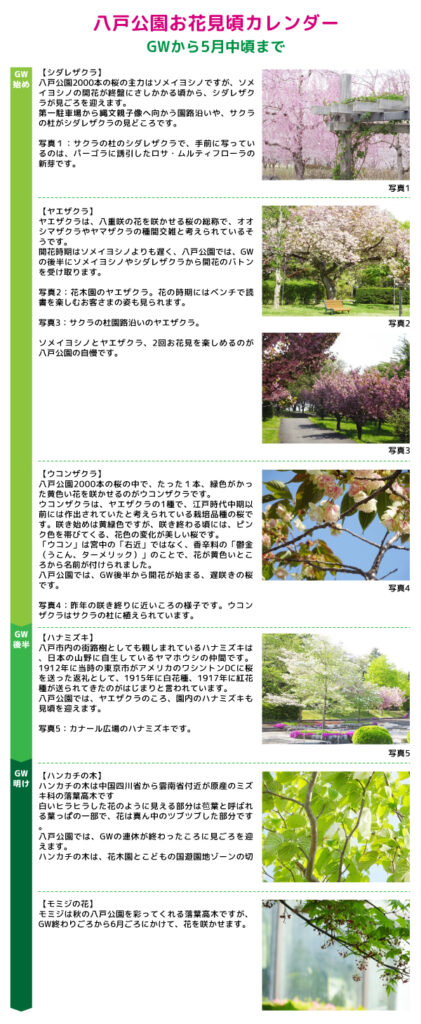 ゴールデンウイークから5月中ごろまでご覧いただけるお花の見頃をご紹介します。園内の散策の際は、ぜひ紹介したお花を探してみてください。