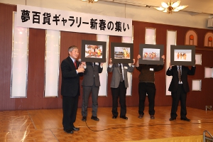 2015.2.21(土)に八戸パークホテルに於いて、夢百貨ギャラリーをご利用の写真愛好家を中心に関東からもご参加いただき日頃の感謝を込めて新春の集いを開催いたしました。毎年大勢の方にご来場いただいており、東通村小田野沢婦人部の祝舞『餅つき踊り』の撮影会も行われ写真を通じてさらに親交を深めました。