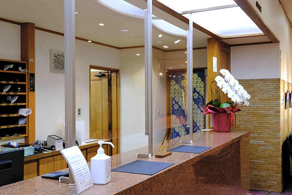 二戸パークホテルでは感染症予防対策として、ロビー入口にAIサーマルカメラ、フロントにアクリル板を設置致しました。