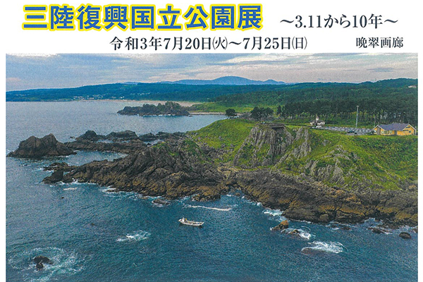 7月20日から仙台市晩翠画廊にて泉山元会長と堀井裕子アドバイザーによる二人展「三陸復興国立公園展~3・11から10年~」が始まりました。